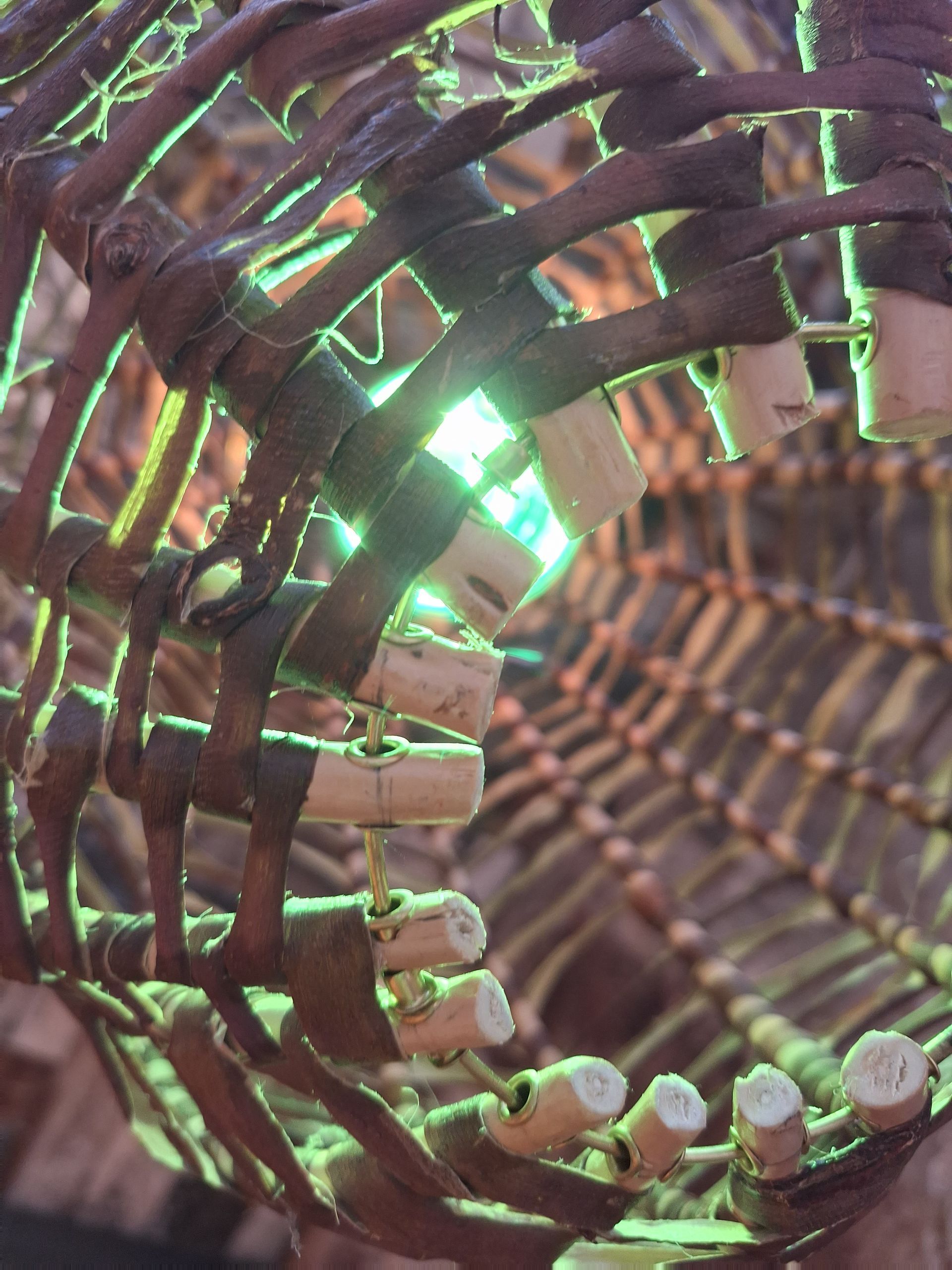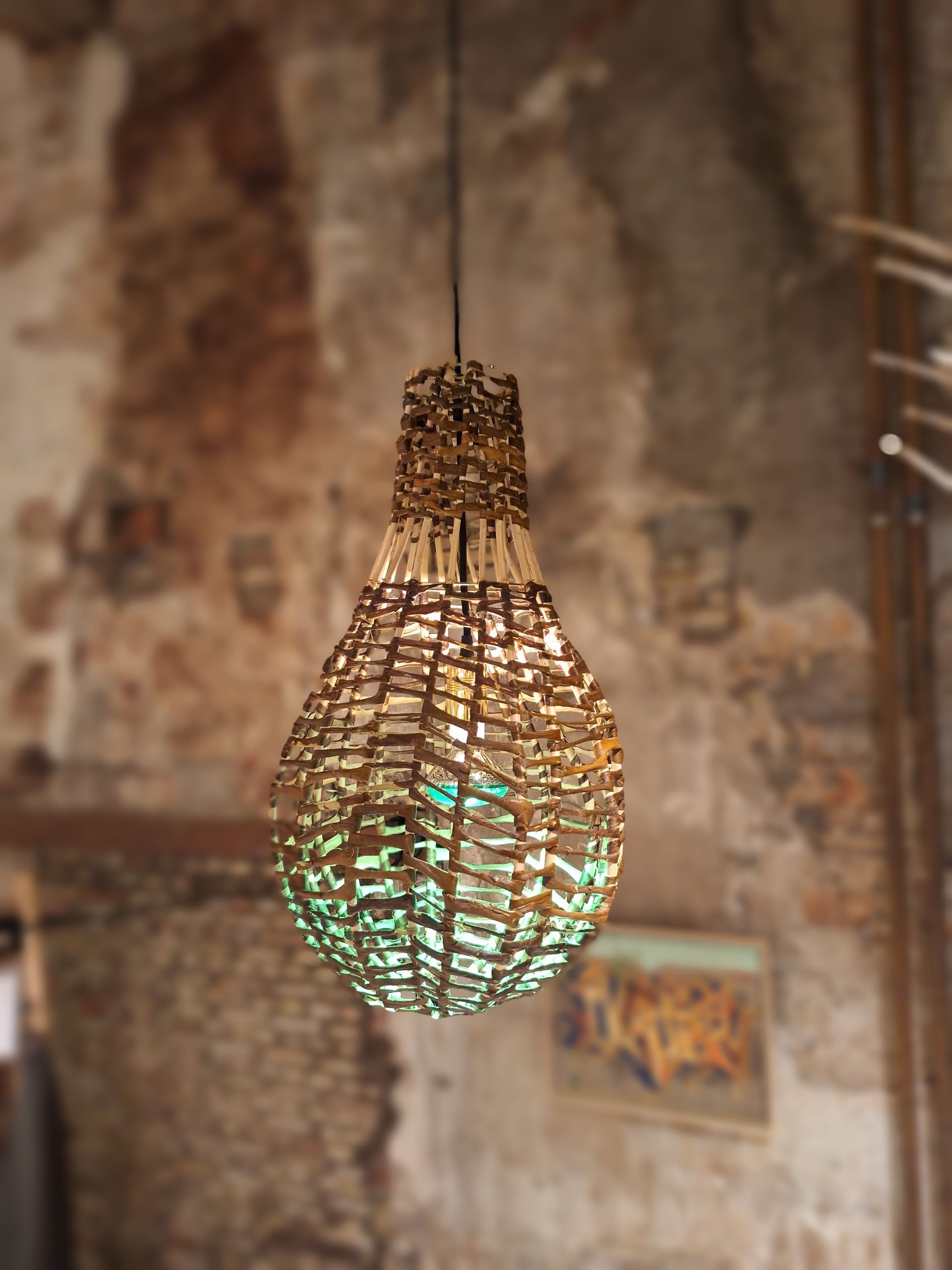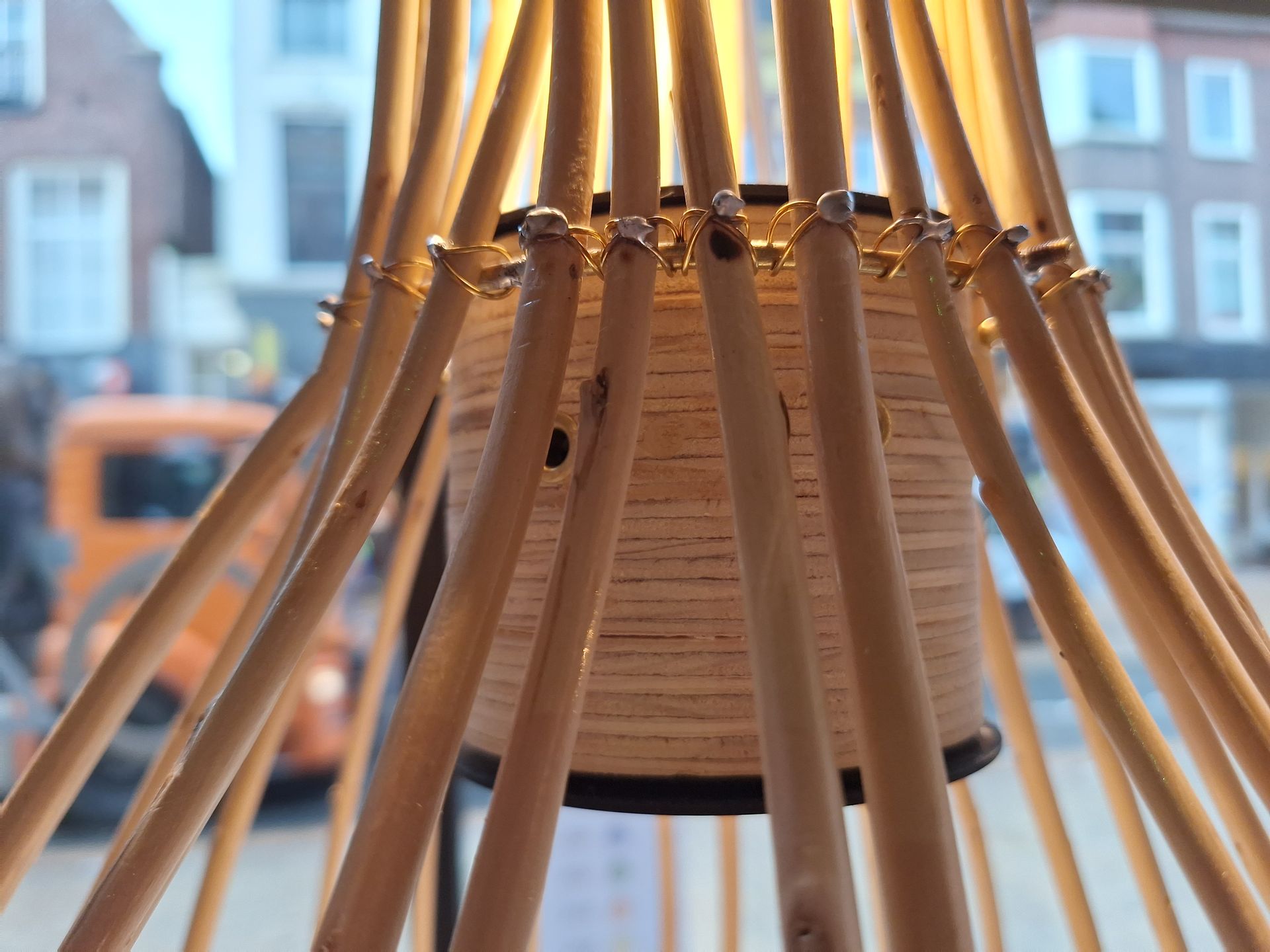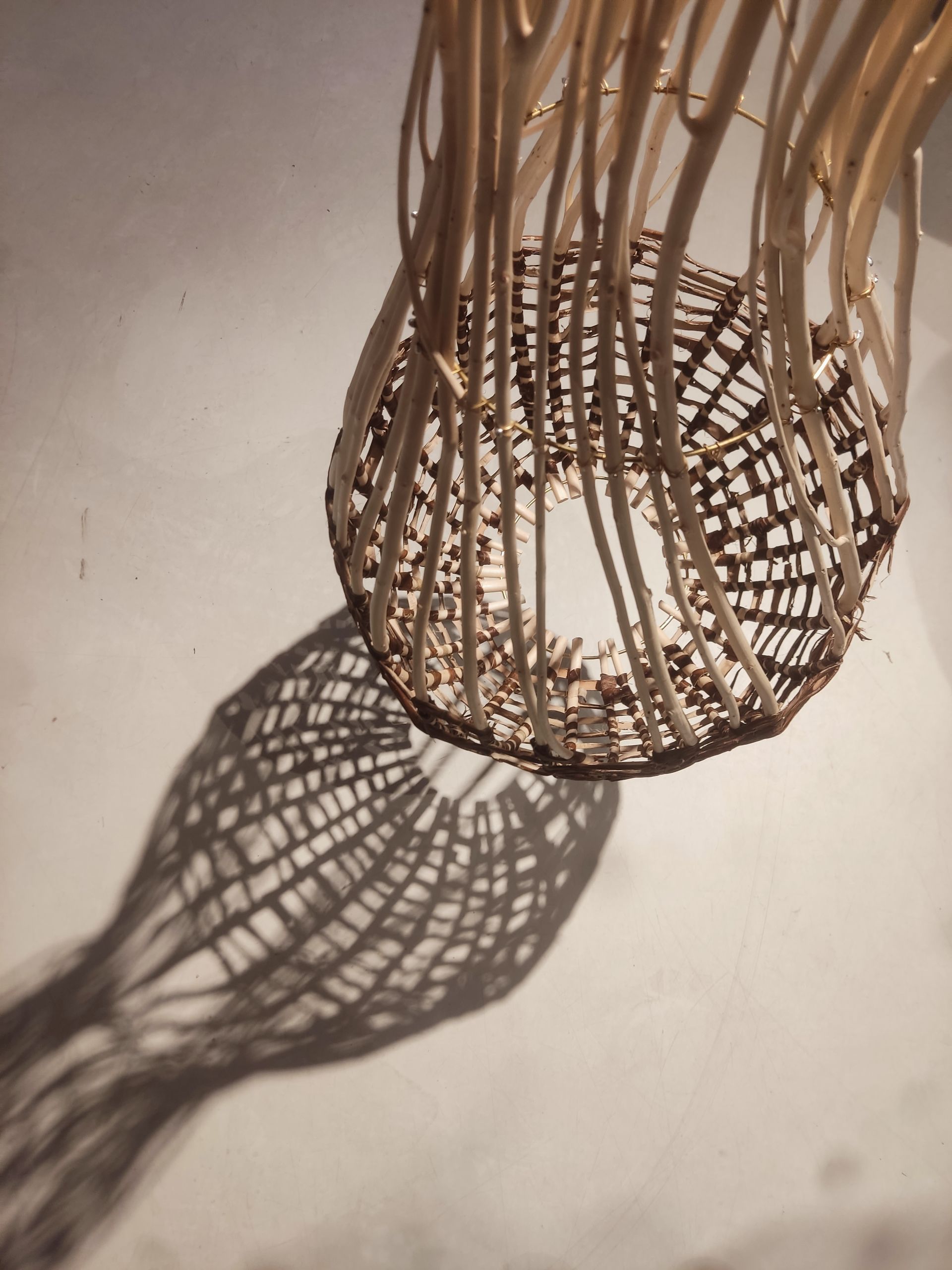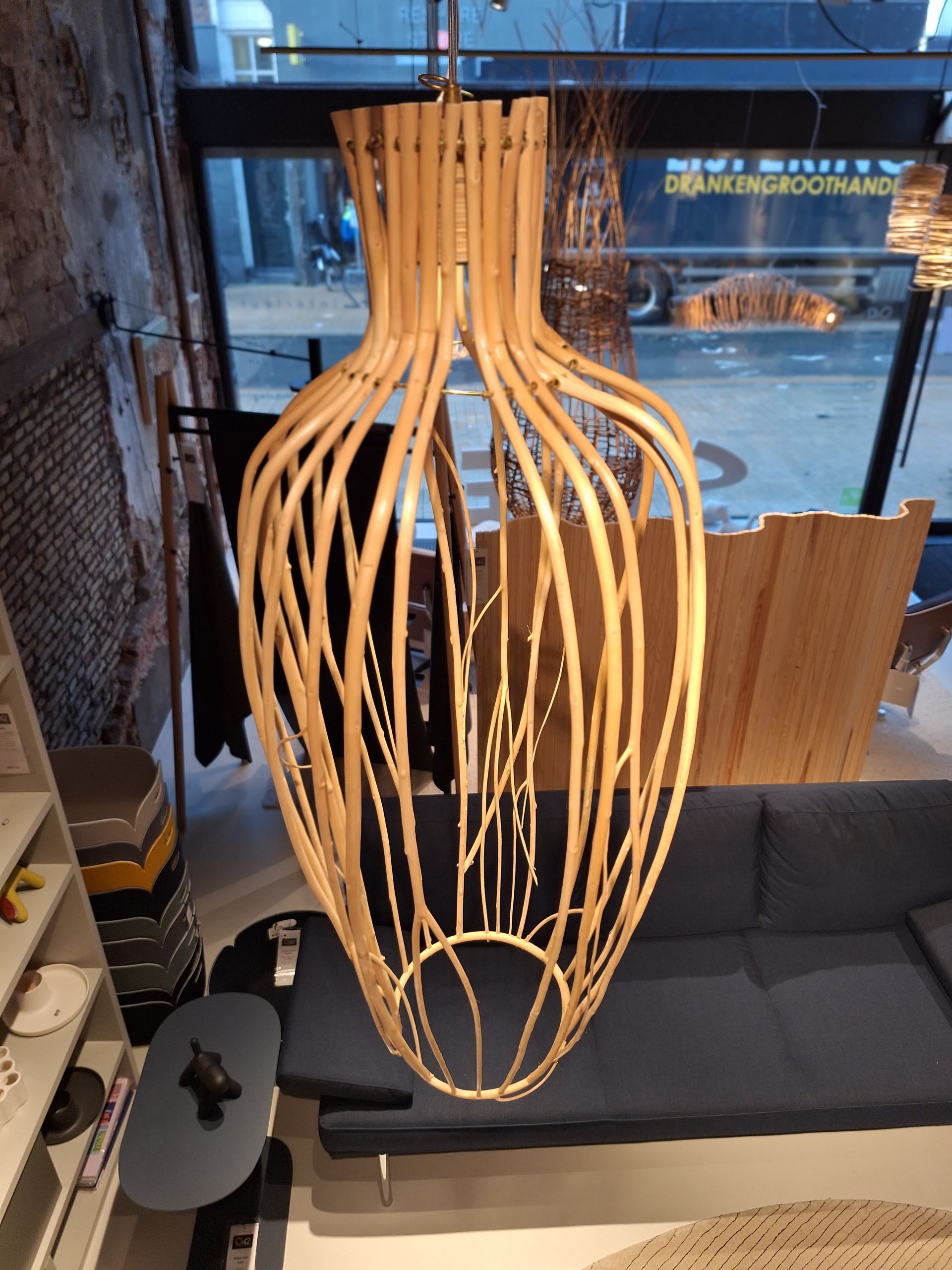 In deze lamp heb ik oude stoomtechnieken en restmateriaal weten te combineren tot een moderne lamp. De takken van knotwilg word al veel decennia gebruikt om bijvoorbeeld dijken te verstevigen. De knotwilg heeft een duidelijk Nederlandse identiteit. Door de takken te stomen wil ik ze een tweede leven in blazen.
