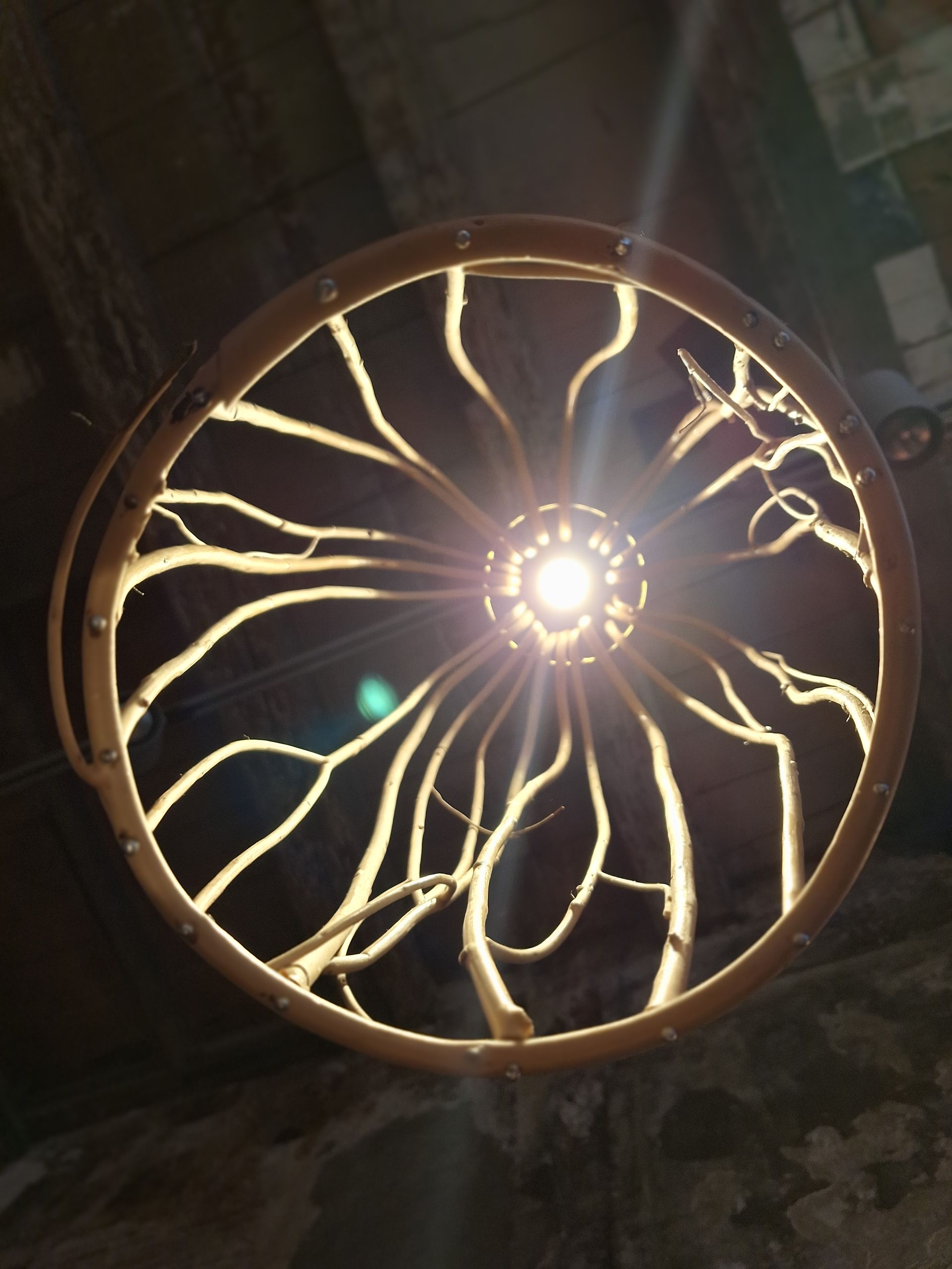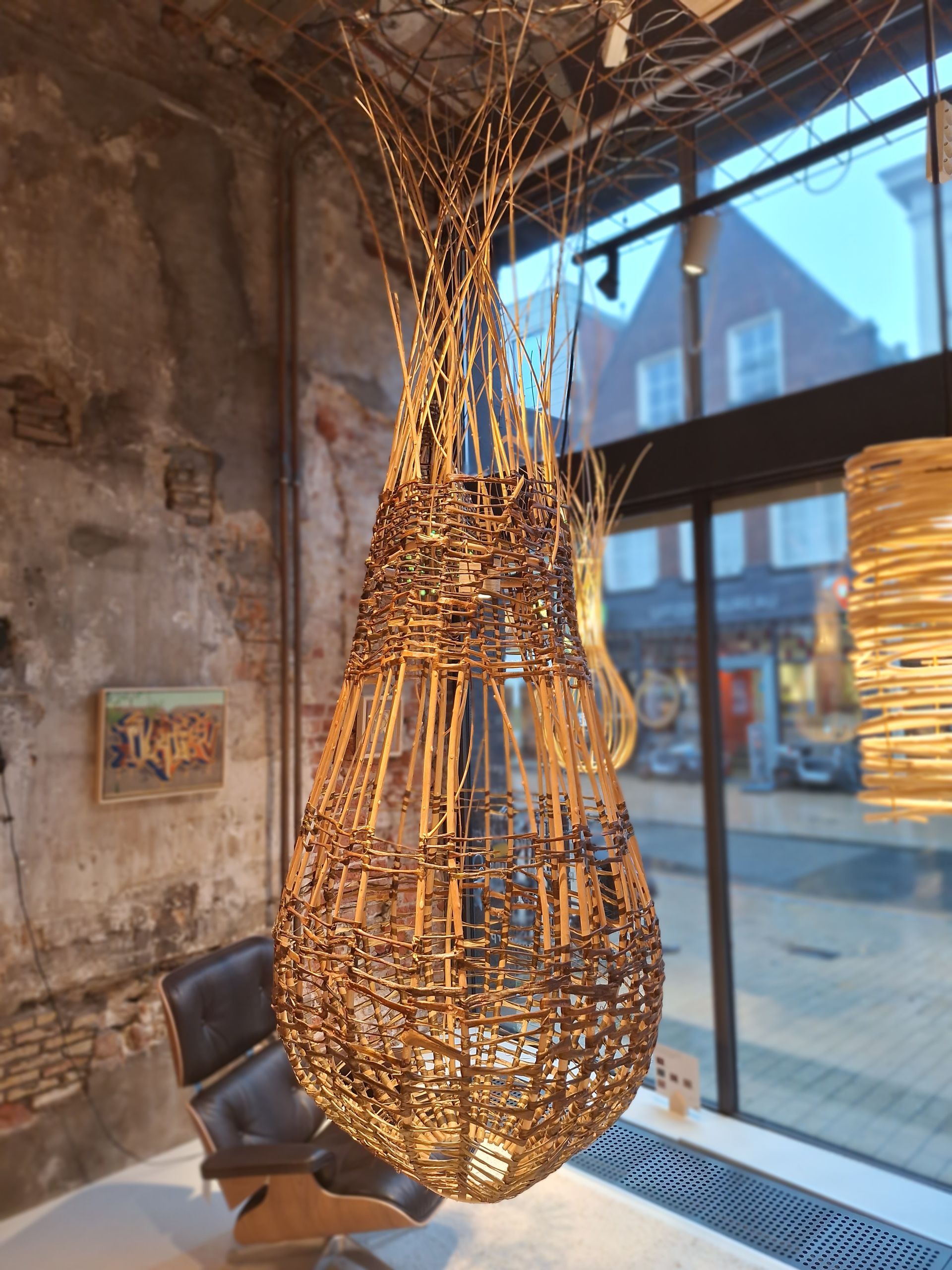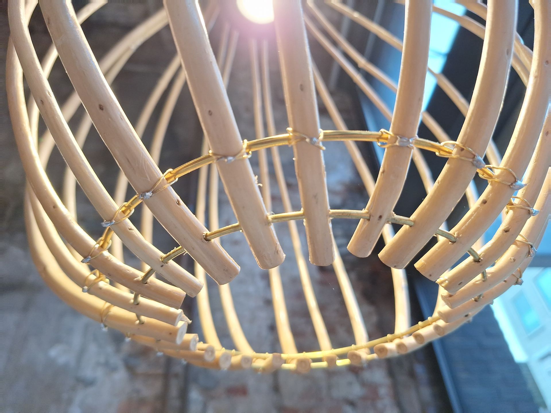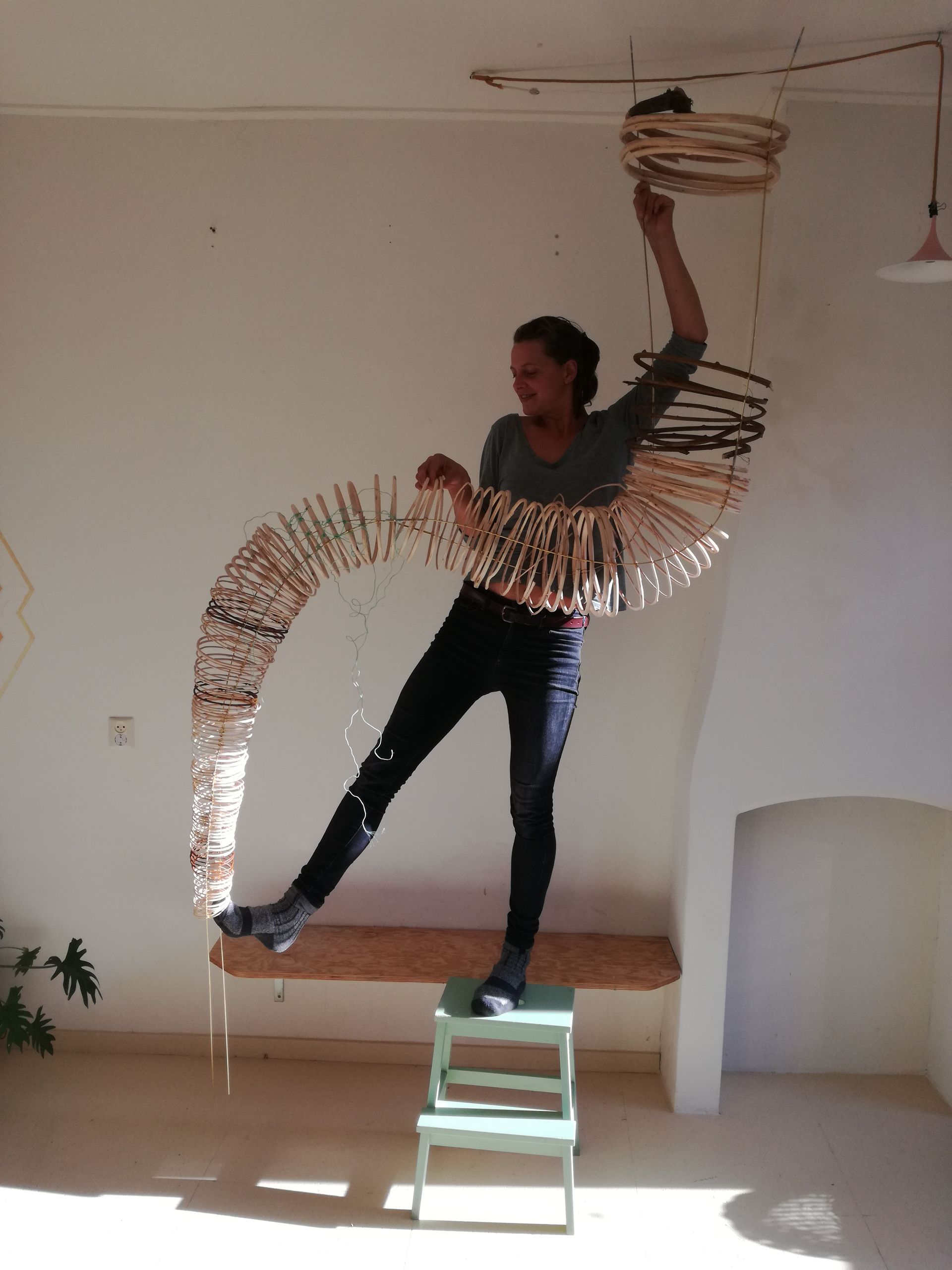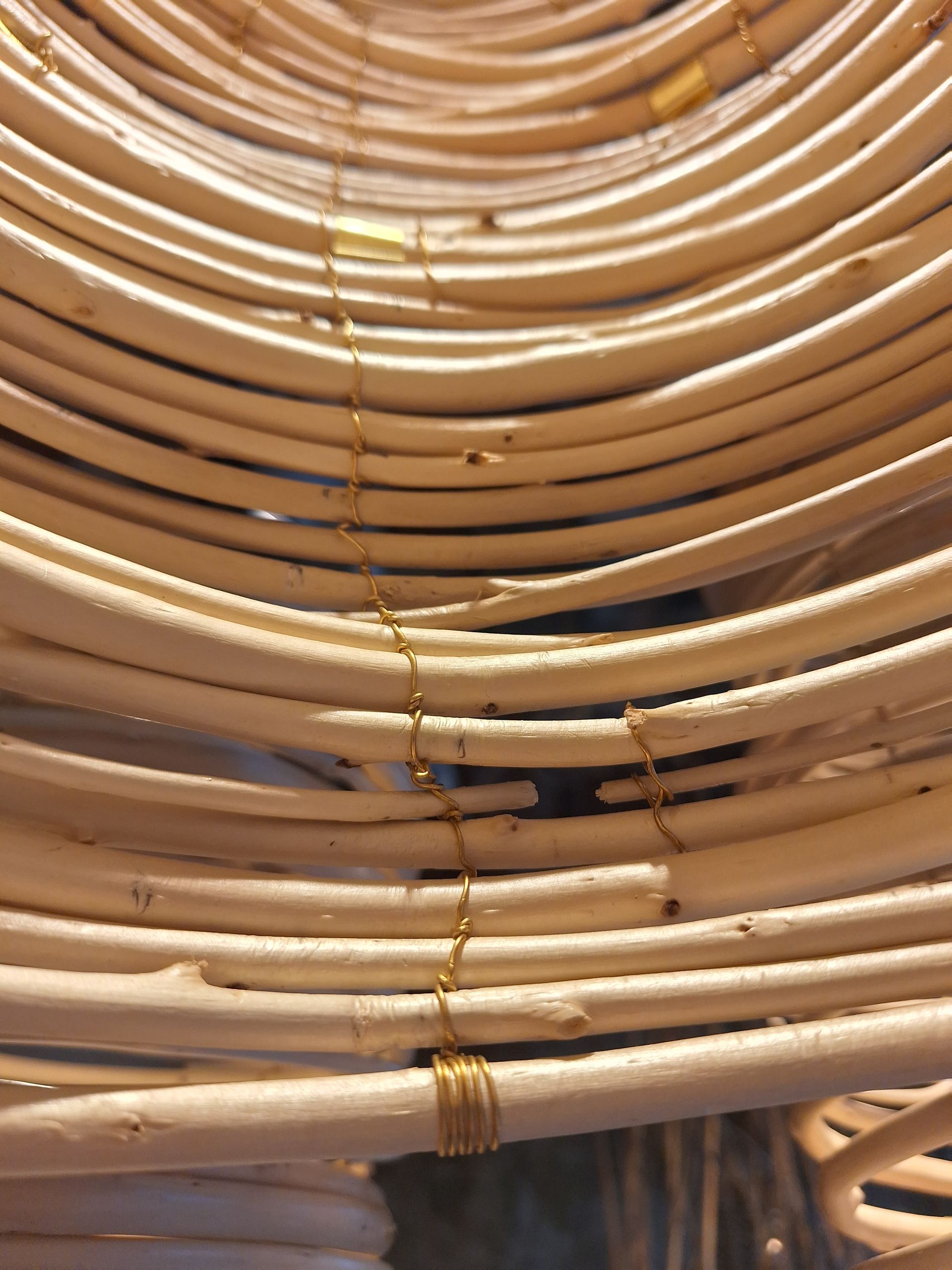 In deze lamp heb ik oude stoomtechnieken en restmateriaal weten te combineren tot een moderne lamp. De takken van knotwilg word al veel decennia gebruikt om bijvoorbeeld dijken te verstevigen. De knotwilg heeft een duidelijk Nederlandse identiteit. Door de takken te stomen wil ik ze een tweede leven in blazen.